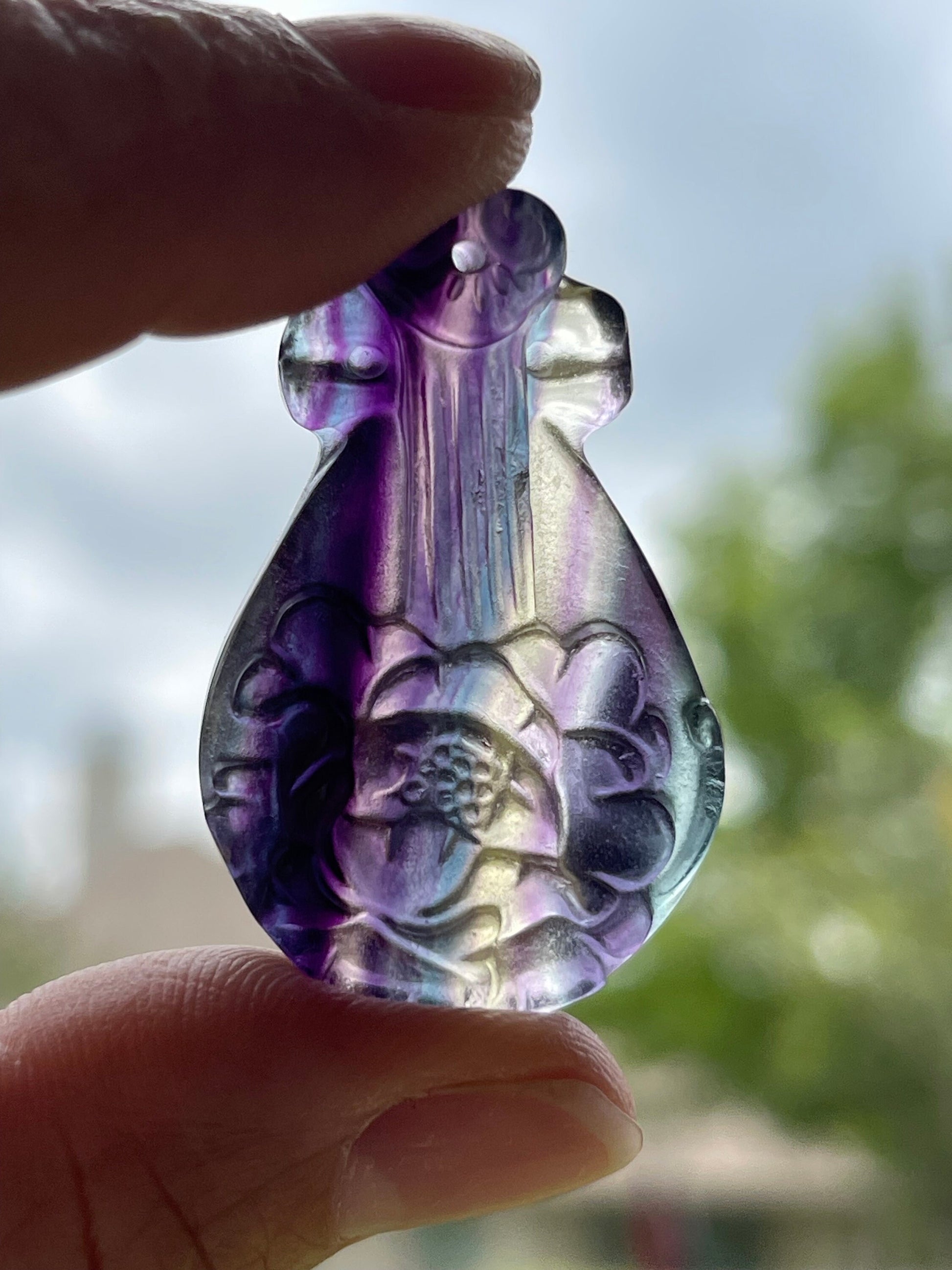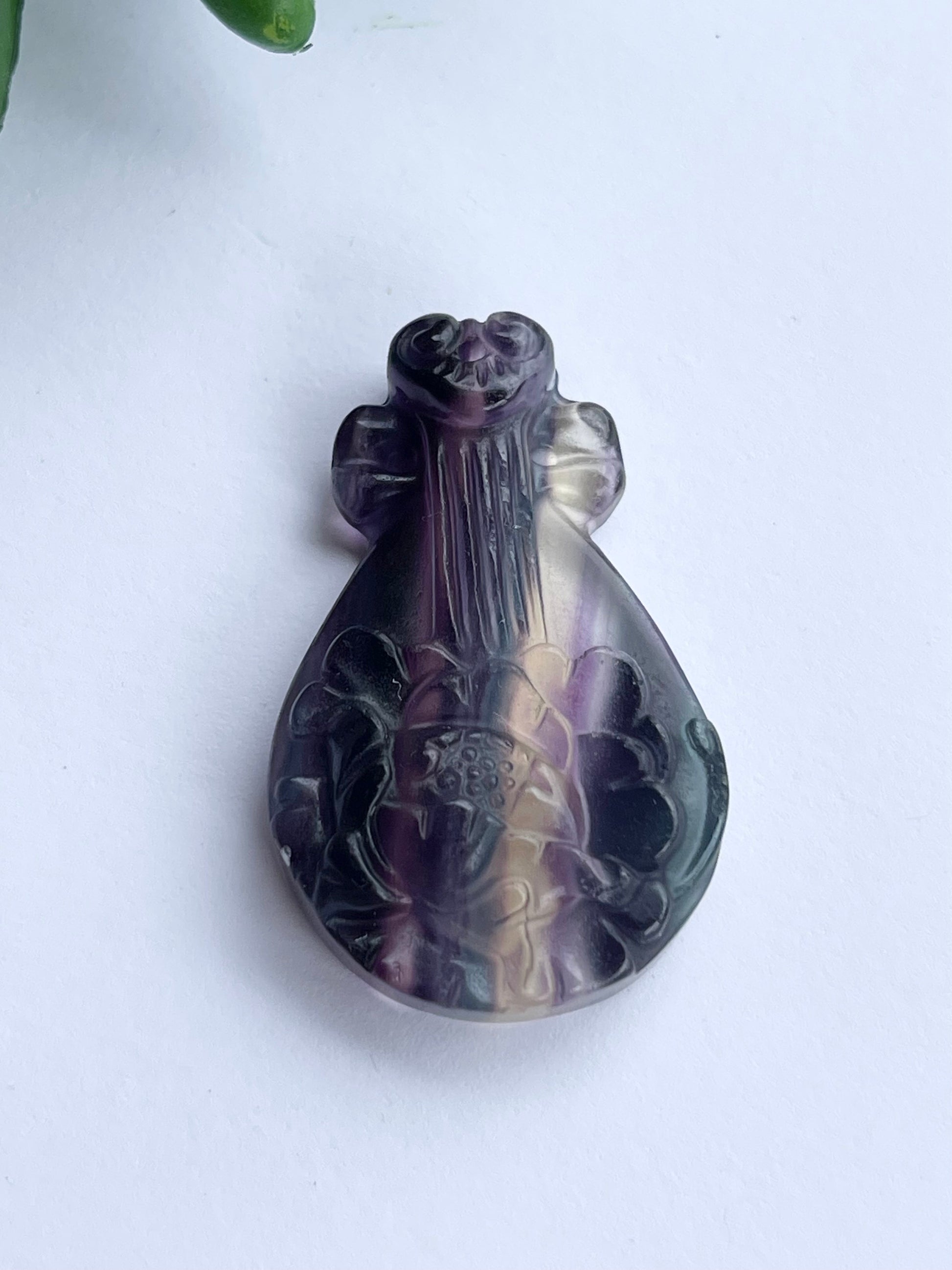 Natural Rainbow Fluorite Pipa Lute Instrument Carving