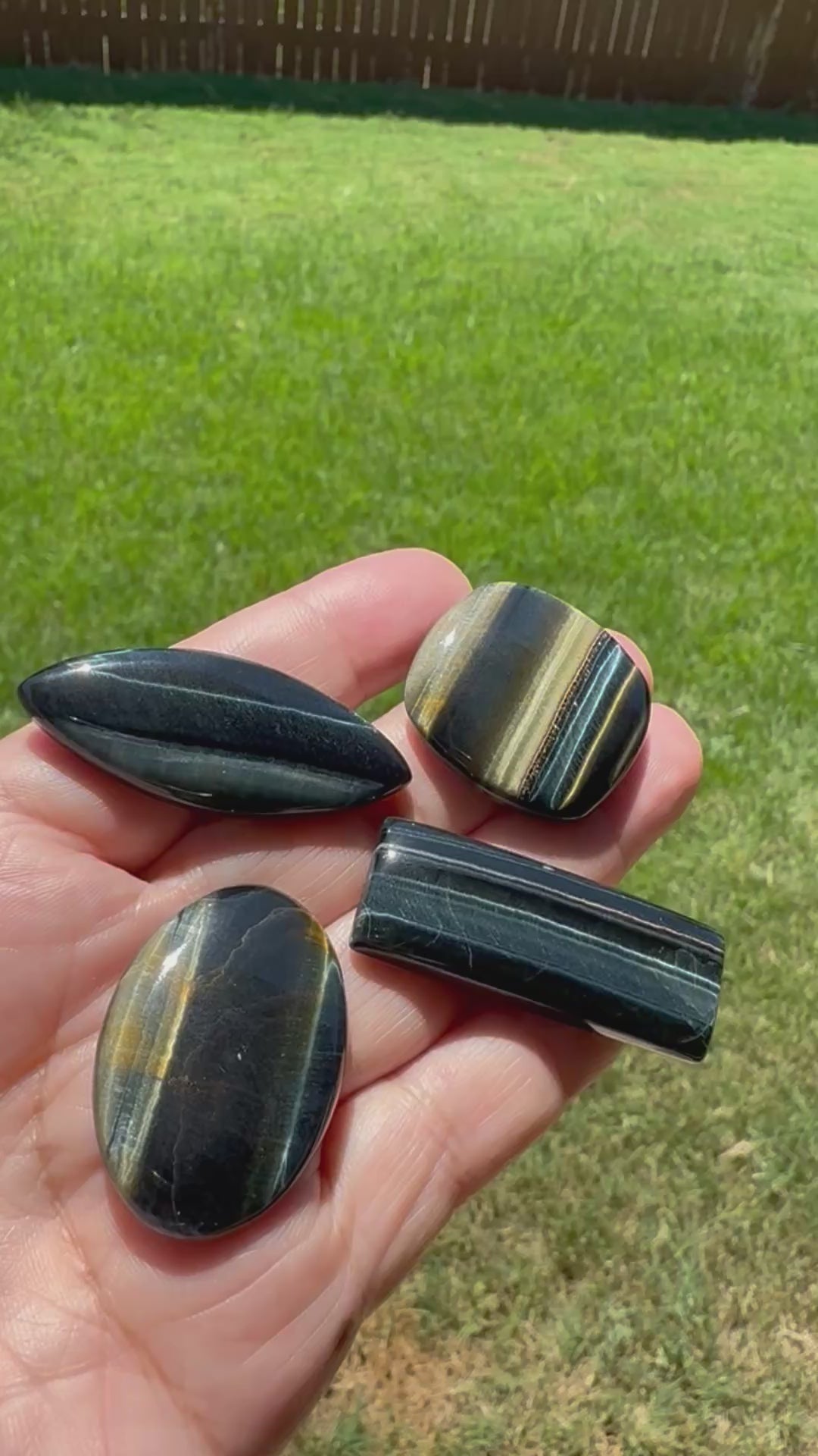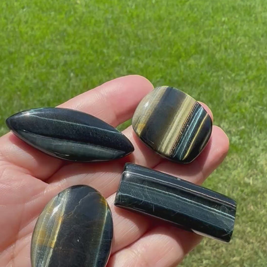 Blue Tiger Eye, also known as HaHawk'sye, is a stone of deep perception and energetic shielding. Its shimmering bands of midnight blue are said to mirror the vastness of the night sky, making it a favored talisman for those seeking clarity in spiritual navigation. Traditionally associated with the throat and third eye chakras, it enhances intuitive sight and symbolic communication, especially in ritual or visionary work. Many practitioners use it as a protective buffer, believing it deflects unwanted energies and sharpens focus during divination, travel, or ceremonial transitions. Its chatoyant glow evokes movement and mystery—like a blade of light cutting through shadow.
