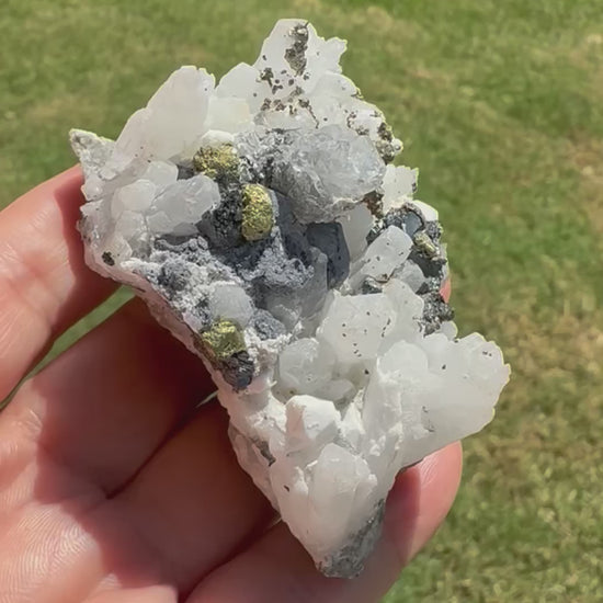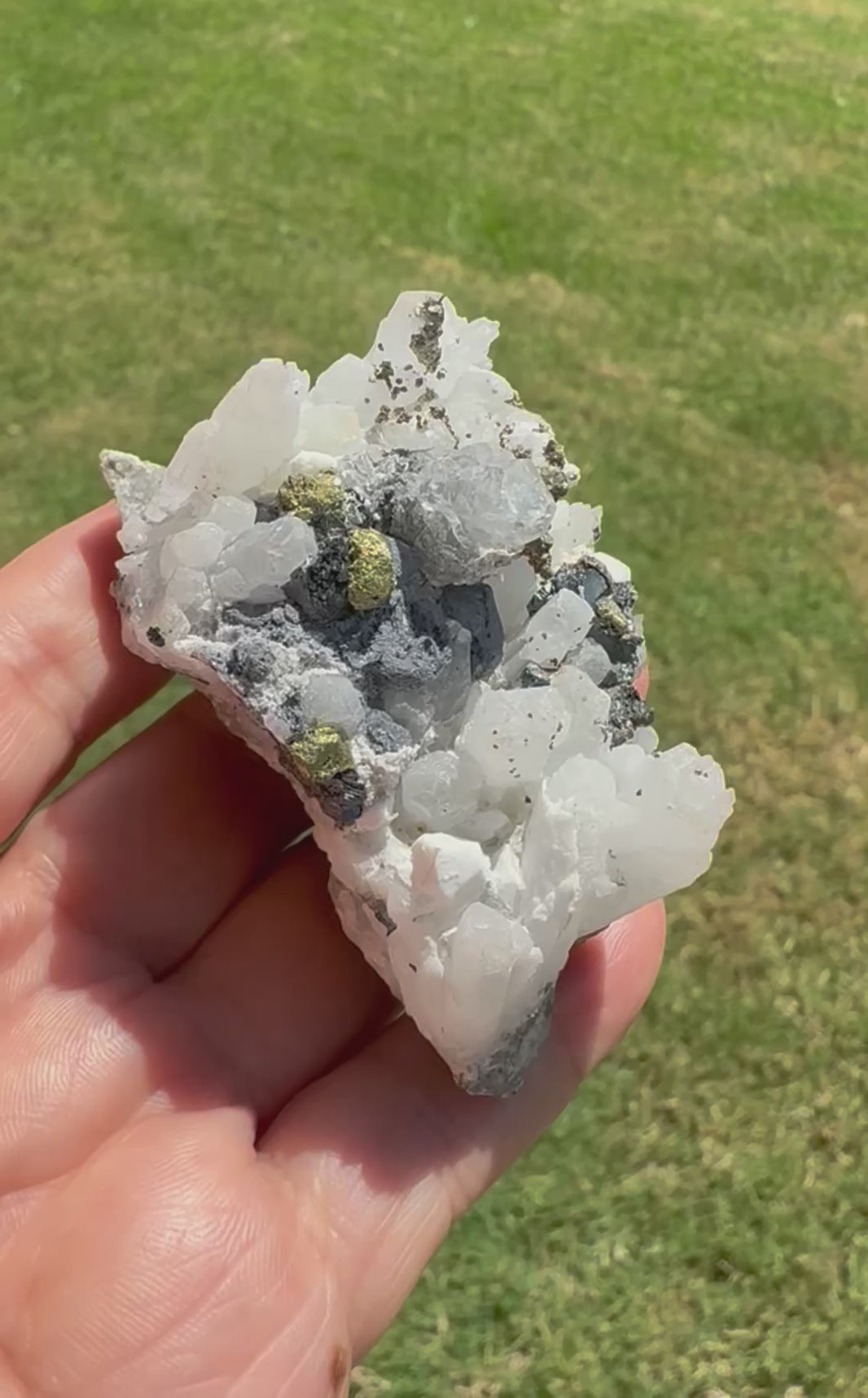 Natural White calcite with Clear Quartz, Pyrite, and Black Tourmaline inclusions