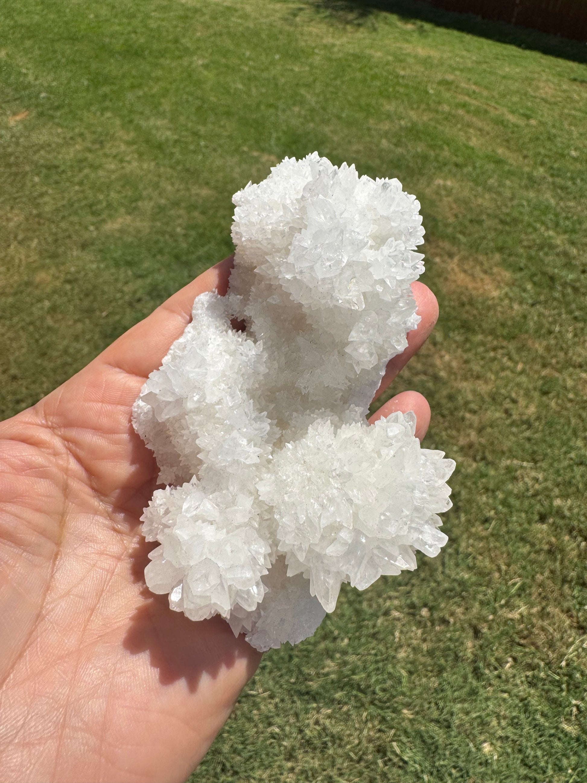 White calcite is renowned for its mystical properties, believed to harness the pure energies of the divine realms. Possessing a tranquil essence, it is said to cleanse the spirit and purify negative energies. White calcite is revered for its ability to amplify one's intuitive abilities, facilitating spiritual growth and enlightenment. As a conduit for divine wisdom, white calcite is cherished for its transformative qualities, guiding individuals on a path of spiritual awakening and enlightenment.